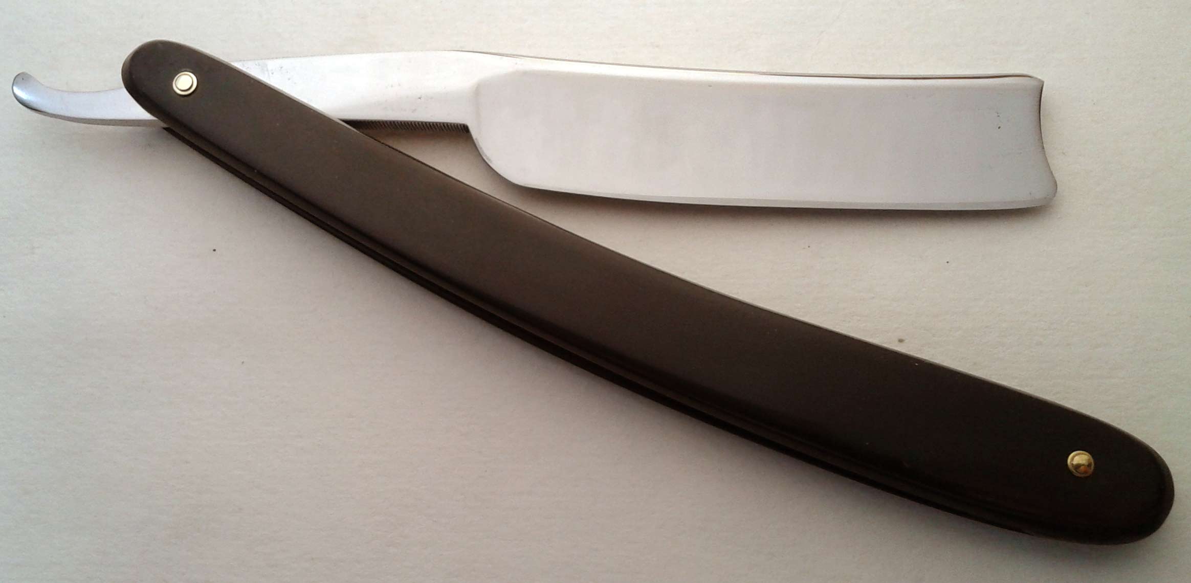 Сведения о производителе: http://britva.ru/forum/viewtopic.php?f=28&t=1663" onclick="window.open(this.href);return false; Ручка - эбонит, в приличном состоянии, клинышек из металла. По-видимому, ручка и пины родные. На полотне присутствуют небольшие "следы времени". Заточена и полностью готова к бритью. Ширина полотна 16,5 мм, толщина в обушке 4,5 мм. Цена 60 евро, доставка включена. Spoiler Show