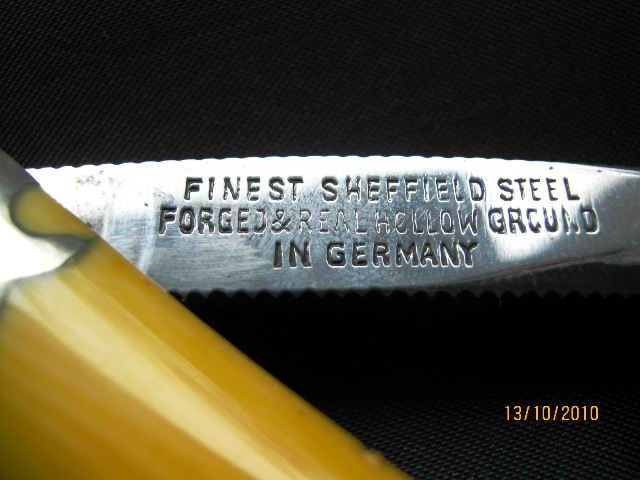 Не подскажете что за бритва? Если рассматривать клейма в отдельности, то вроде понятно. Латинская буква S с мечами, и лист клевера. А как понять что они вместе на одной клинке?