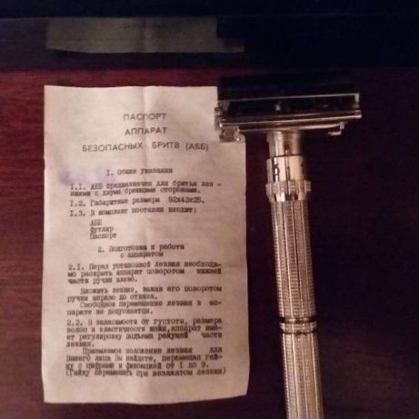 Добавлено спустя 10 минут 43 секунды: Кстати, если верить ebay, советские станки "Консул" и "Меридиан"- это тоже Vintage Ukrainian Safety Razor: https://www.ebay.com/itm/Vintage-Ukrain ... 3052782368" onclick="window.open(this.href);return false; https://www.ebay.com/itm/Vintage-Ukrain ... 2032013977" onclick="window.open(this.href);return false; но найти, например, какую-нибудь инструкцию, где указан был бы хотя бы регион-производитель, не могу Тем более, топикстартер написал просто "бритвы", а на данном форуме это почти всегда синонимично "клинковым бритвам"... Добавлено спустя 6 минут 26 секунд: Если говорить о Т-образных станках, вот ещё, пожалуйста. Бритвенный станок ДОНБАСС с регулятором. Подарочное исполнение. 1973 год. Северодонецкий приборостроительный завод ОСТ 27.09-147-73 Волхвы не боятся могучих владык,