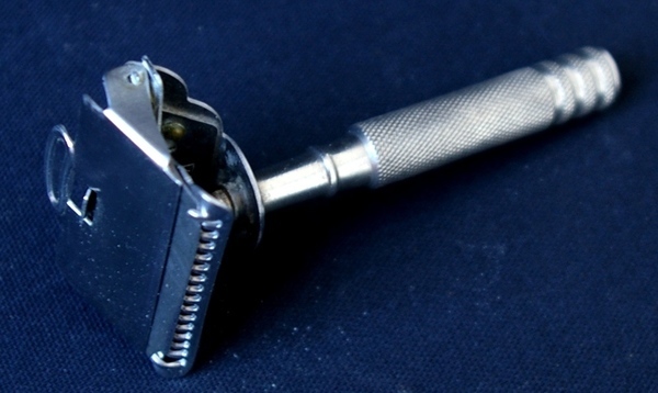 Бритвенный прибор Киевского фурнитурного завода. Абсолютно уникальная вещь. Бритвенный станок является копией изделия компании «American Safety Razor». Она была основана в 1919 году путем объединения старейшего в США производителя безопасных бритв «Star Safety Razor» братьев Кампфе из Нью-Йорка с компаниями конкурентов «Gem Cutlery» и «Ever-Ready». Конструкция запатентована еще в 1912 году бывшим совладельцем «Ever-Ready» Августом Шойбером. Эти изделия выпускались под историческими именами «Star», «Gem» и «Ever-Ready» миллионами вплоть до 40-х годов. В Европе и США они практически ничего не стоят, не как у нас. Как и кому в Киеве пришло в голову производить это не известно. Но самое главное, эти люди и не рассчитывали на штатные лезвия типа «Single Edge» с одной режущей кромкой. В России при царе их еще можно было купить, при большевиках — никак. Вопросы же импорта либо иностранной концессии рассматривать было глупо и, видимо, опасно. Разумней было бы отказаться от столь экстравагантной затеи. Сделать нормальный «жиллетовский» станок, коль приспичило. Но киевские товарищи не искали легких путей. И они нашли решение проблемы в Москве. На Шаболовке работала артель «Бритва». Ей и заказали подходящие по форме и размеру клинковые лезвия. Прототип лезвий был придуман еще в 1875 году братьями Кампфе. Трудно представить себестоимость этих лезвий в 1940 году, даже без учета непростой логистики. И, хотя москвичи не подвели, дела в Киеве явно не пошли. А тут и война случилась. И оккупация. Поучительная, но вовсе не удивительная для нашей страны история объезда на кривой козе. Нормальные герои всегда идут в обход! А вот артельщиков из «Бритвы» надо вспомнить добрым словом. Если бы не заведенный у них порядок ставить на лезвия клеймо с датой изготовления, мы не узнали бы, когда вся эта ерунда произошла. Сам Фурнитурный завод был построен еще в 1932 для производства гвоздей и комплектующих для обуви. Этим там занимаются и поныне. Бритвы больше не делают, хотя, кто их знает! Волхвы не боятся могучих владык,