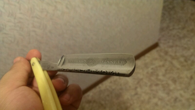 На бритве имеються остатки затёртой гравюры с надпиью "Feinste Qualitet" .