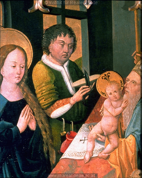 Circumcision of Christ, detail from Twelve Apostles Altar (Zwölf-Boten-Altar). Painting by Friedrich Herlin of Nördlingen, 1466. Rothenburg ob der Tauber.