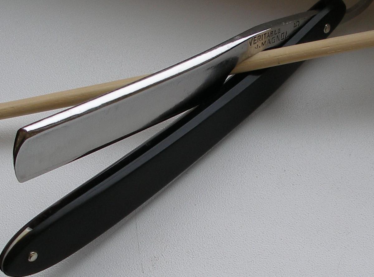 Обычная "тихая" сталь как на всех старых французских бритвах, никакой мистики. Просто хорошая сталь. Ширина 4/8, ручка рог, заточена. ПРОДАНО 404 Show