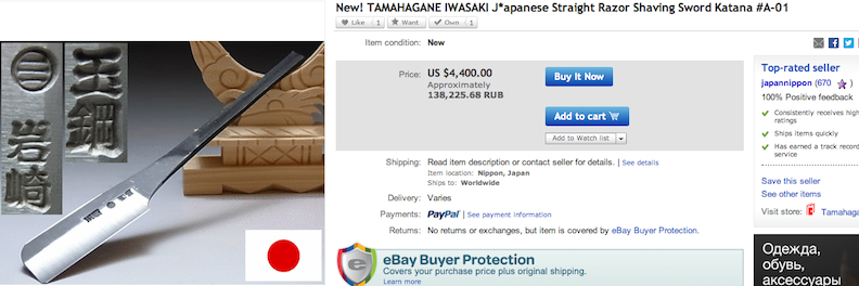 Re: IWASAKIХотя самураи конечно рубят наповал ..... 4 400 USD, наверное ну очень хорошо брить будет! http://www.ebay.com/itm/New-TAMAHAGANE- ... 1c2cae6e3f" onclick="window.open(this.href);return false;
