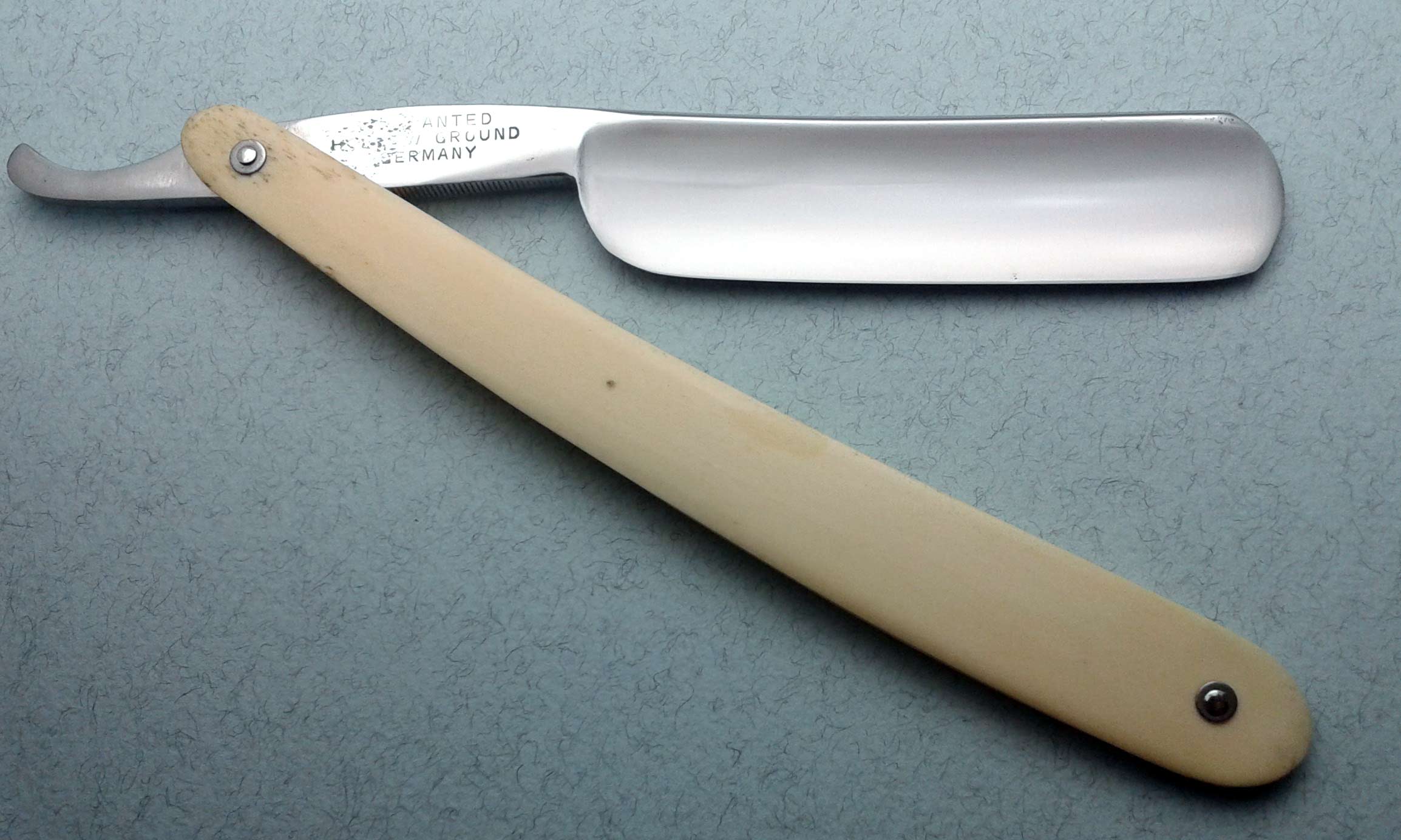 Ручка - натуральная кость, в прекрасном состоянии. Клинышек - металл. Заточена и полностью готова к бритью. Ширина полотна 19 мм, толщина в обушке 5 мм.
