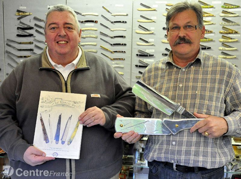 Deux collectionneurs d’objets liés au monde de la barbe ont écrit un livre sur le coupe-choux André Morand montre un rasoir droit géant qui servait de publicité aux couteliers. Alex Delaide tient le livre que les deux collectionneurs ont écrit sur l’objet de leur passion.? - Photos dominique parat André Morand possède une collection de rasoirs. Au sein du club des Rasophiles d’Oc et d’Oil, ce Cussetois a rencontré Alex Delaide, un Riomois qui partage la même passion. Ils ont coécrit un livre sur le rasoir droit. André Morand n'est pas du genre à couper les cheveux en quatre, mais lorsqu'il présente sa collection, il aime être précis et n'oublie aucun détail. Ce Cussetois collectionne tout ce qui touche à la pogonotomie, c'est-à-dire à l'art de se raser soi-même. Il possède notamment environ 500 rasoirs droits. Connu aussi sous le nom de rasoir à main, rasoir couteau ou rasoirs coupe-choux, cet ustensile de toilette a encore ses adeptes. La dernière coutellerie française qui fabrique des rasoirs droits en produit 13.000 par an sans pour autant satisfaire la demande ( voir par ailleurs). Rasoirs en bronze André Morand, qui avoue se raser avec un rasoir mécanique à lame jetable, a débuté sa collection par hasard. « Mon beau-père était fabriquant de rasoirs à Thiers. Sa coutellerie Pradat-Brun a fermé en 1970. Il m'a offert une marmotte, c'est-à-dire une mallette de représentant, qui contenait 100 rasoirs », explique ce Cussetois qui, à l'époque, collectionnait les cartes postales. « Sur les brocantes, je trouvais de temps en temps des rasoirs droits. J'ai commencé progressivement à en acheter ainsi que tout ce qui touche au monde de la barbe », indique André Morand qui a ensuite adhéré au Rasophiles d'Oc et d'Oil. Ce club compte 25 membres dont le Riomois Alex Delaide. Comptable chez Michelin, cet ex-collectionneur de timbres a plongé dans le rasoir en fréquentant également les brocantes. Alex Delaide possède notamment 6.500 lames de rasoirs mécaniques différentes. Les deux hommes ont coécrit un livre sur le coupe-choux dont il n'existe aucun ouvrage de référence. « On trouve des catalogues avec de longues listes de modèles de rasoirs mais pas de livre comme on en trouve sur les couteaux par exemple », précise Alex Delaide. Des premiers rasoirs en bronze aux créations à lames damas de la coutellerie Thiers-Issard, ce livre permet un voyage dans le temps nullement barbant. À noter que le club des Rasophiles d'Oc et d'Oil tiendra son assemblée générale le 3 juin prochain à Riom. Mais le rendez-vous le plus important pour les deux collectionneurs aura lieu à la Monnerie-le-Montel, dans le Puy-de-Dôme. Les 28 et 29 septembre, dans le cadre du salon coutelier « Au fil des lames et de la Durolle », ils participeront à l'exposition consacrée à 2.000 ans de rasage. Contact. André Morand : bardin.morand@orange.fr ; Alex Delaide : alex.delaide@orange.fr ; Rasophiles d'Oc et d'Oil : rasophiles.free.fr Denis Lorut denis.lorut@centrefrance.com Все говорят, что мы в месте…