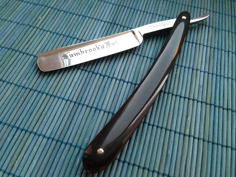 Шеффилд в интересном исполнении . Ширина полотна 6/8 . Бритва в использовании не была , заточка по просьбе покупателя .