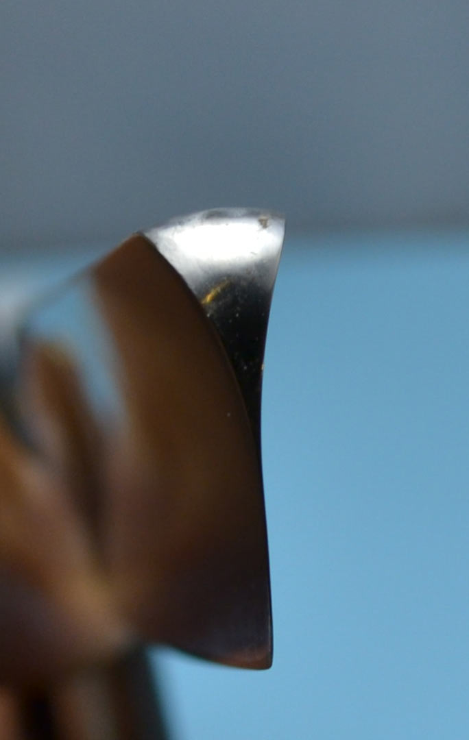 Ручка из рога, клинышек - металл. Ручка возле концевого пина имеет продольную трещину. Заклеена цианакрилатом, на прочность проверена - при нормально использовании проблем не возникнет. По геометрии скорее это все же quarter hollow, а не клин. Заточена и полностью готова к бритью. Ширина полотна 20 мм, толщина в обушке 5 мм. В комплекте штатный футляр "гробиком". ПРОДАНА Spoiler Show Сведения о производителе: http://britva.ru/forum/viewtopic.php?f= ... ilit=klaas" onclick="window.open(this.href);return false; Ручка из эбонита, в отличном состоянии. Заточена и полностью готова к бритью. Ширина полотна 14 мм, толщина в обушке чуть меньше 4 мм.