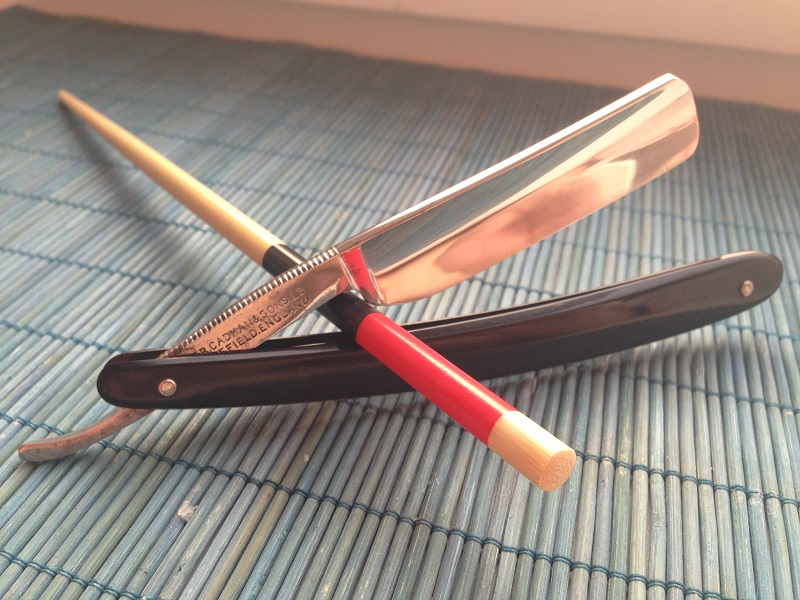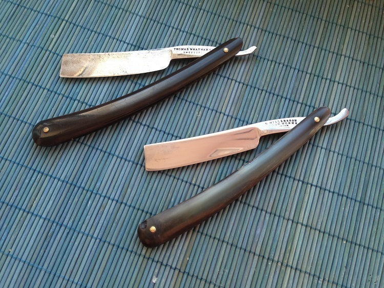 ПРОДАНО Шеффилд Show Старая добрая Англия , состояние бритв "как есть" . Ширина полотен 5/8 , на Whatham-е следы коррозии , ручка скорее всего менялась ; D.Miller полотно подчищено , ручка рог , по всей видимости родная .