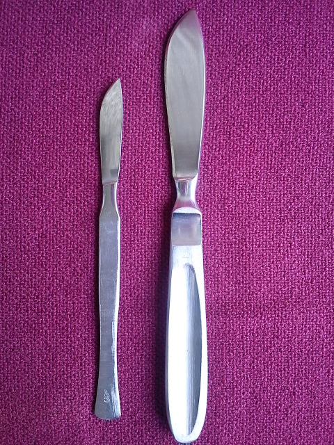 Re: Продаётся от RumataПродам два медицинских скальпеля.Производство СССР.Может кому в хозяйстве пригодится(начинающим хирургам,садистам и тд).Длина первого скальпеля 20,4 см,длина второго 16,2.Цена 20 евро(почта включена).