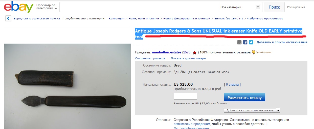 Обьем продаж в Америку огромен. В 1870 году сюда было послано более 10 тонн ножевого товара…".