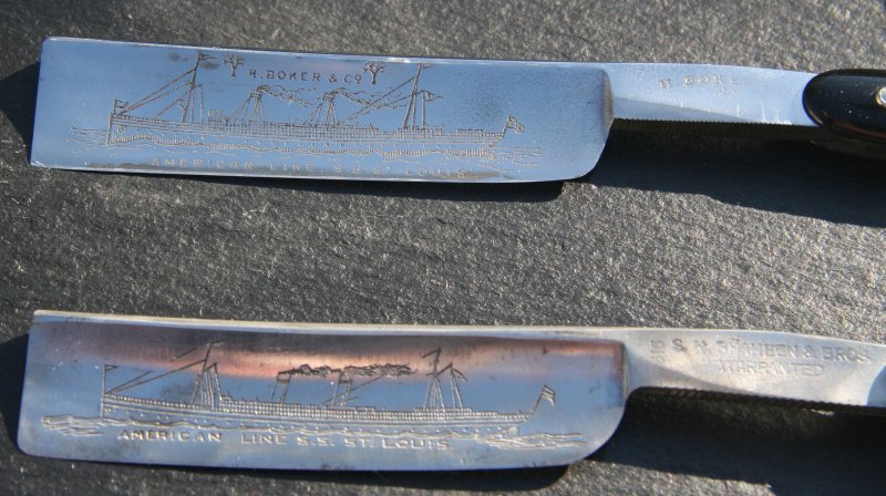 Торговые марки и логотипы: Bicycle (около 1894), Eclipse (около 1903), Edelweiss (около 1902), Hardy Bros. (около 1884), Hilton (около 1932), John Newton, John Primble (Belknap Hardware), Manhattan Cutlery Co. (около 1868), New Haven Cutlery Co., New West R+C (Richards & Connover Hardware), Rainbow (около 1933), R.J.Roberts Razor Co., Razor (около 1905), Red Injun (около 1902), Regal (около 1906), Riverside Cutlery Co. N.Y. (около 1918), Trenton Cutlery Co. (около 1905), Trenton Cutlery Sheffield, Valley Forge Cutlery Co. Newark, N.J. (прямой, около 1916), Valley Forge Cutlery Co. U.S.A. Newark, N.J. (изогнутый), Whitehead & Hoag Co., The W.& H. Co., Wright & Hilhelmy (около 1927).