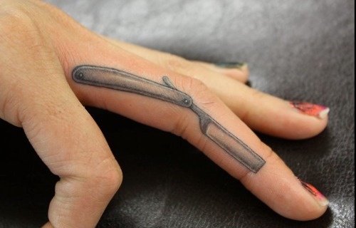 Re: Интересные фото с бритвойБритва - дизайн татуировки может символизировать множество вещей, но все они носят значение «острый» (заостренный, режущий, раздраженный, раздражительный, несдержанный). Бритва часто использовалось как инструмент самоубийства, синоним - «резать вены». Опасная бритва – классический дизайн олдскула, который в 70-80-х годах часто использовался как принадлежность к употреблению кокаина, им делили на порции. Также, как и кастет, бритва указывала на профессии людей за гранью закона, могло символизировать депрессию, взрывной характер человека, несдержанность, опасность. с сайта http://www.tattooator.ru/biblioteka/biblioteka/50/" onclick="window.open(this.href);return false; статья -- Олдскул в татуировке - история и символы Re: Интересные фото с бритвойСудя по рукам, брата младшего бреет))