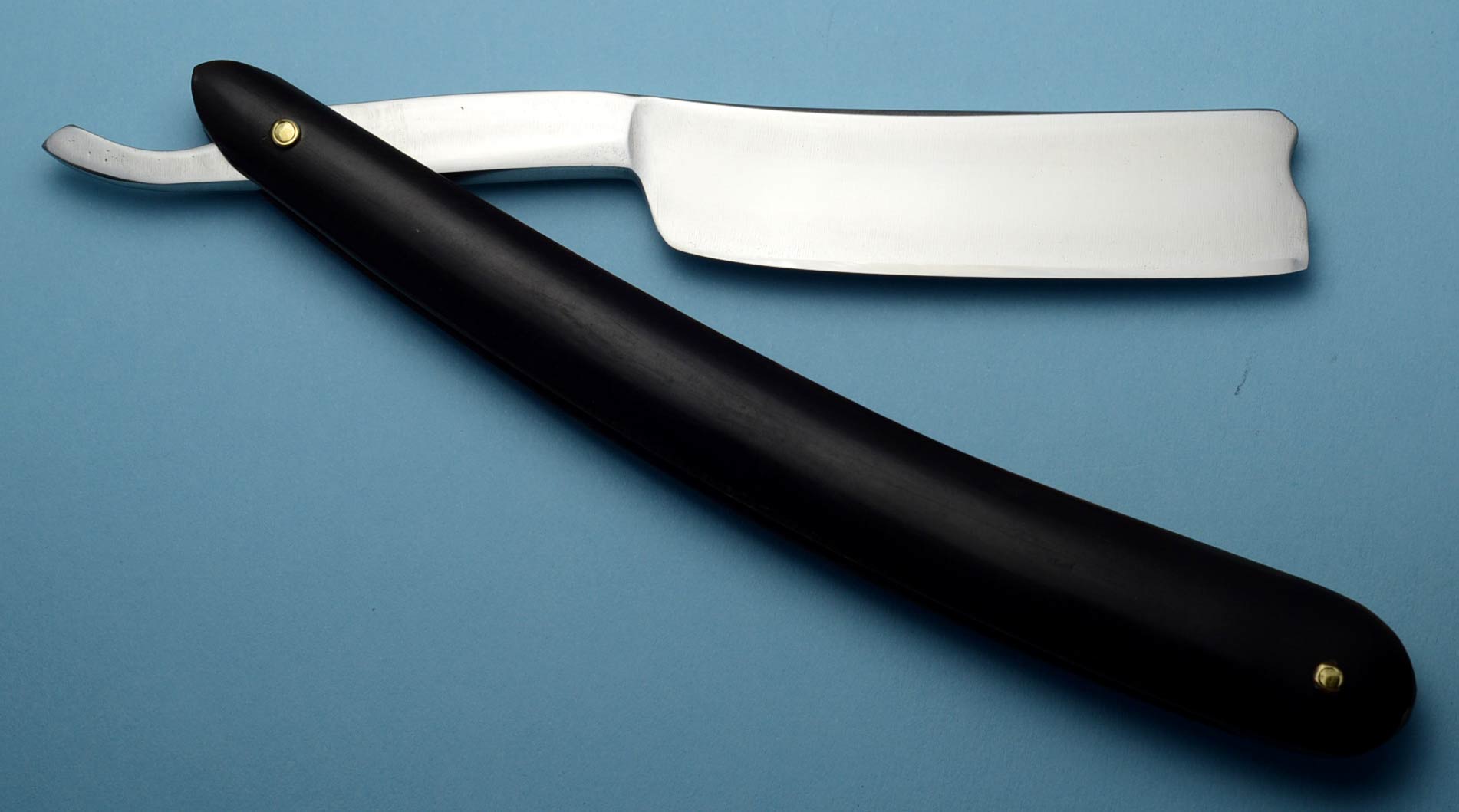 Ручка из эбонита, в отличном состоянии, по-видимому, родная Весьма тяжелая бритва, по геометрии quarter hollow (1/4). Опробовал в бритье - отлично работает, по ощущениям при бритье ближе к клину. Заточена и полностью готова к бритью. Ширина полотна 19.5 мм, толщина в обушке чуть меньше 5.5 мм.
