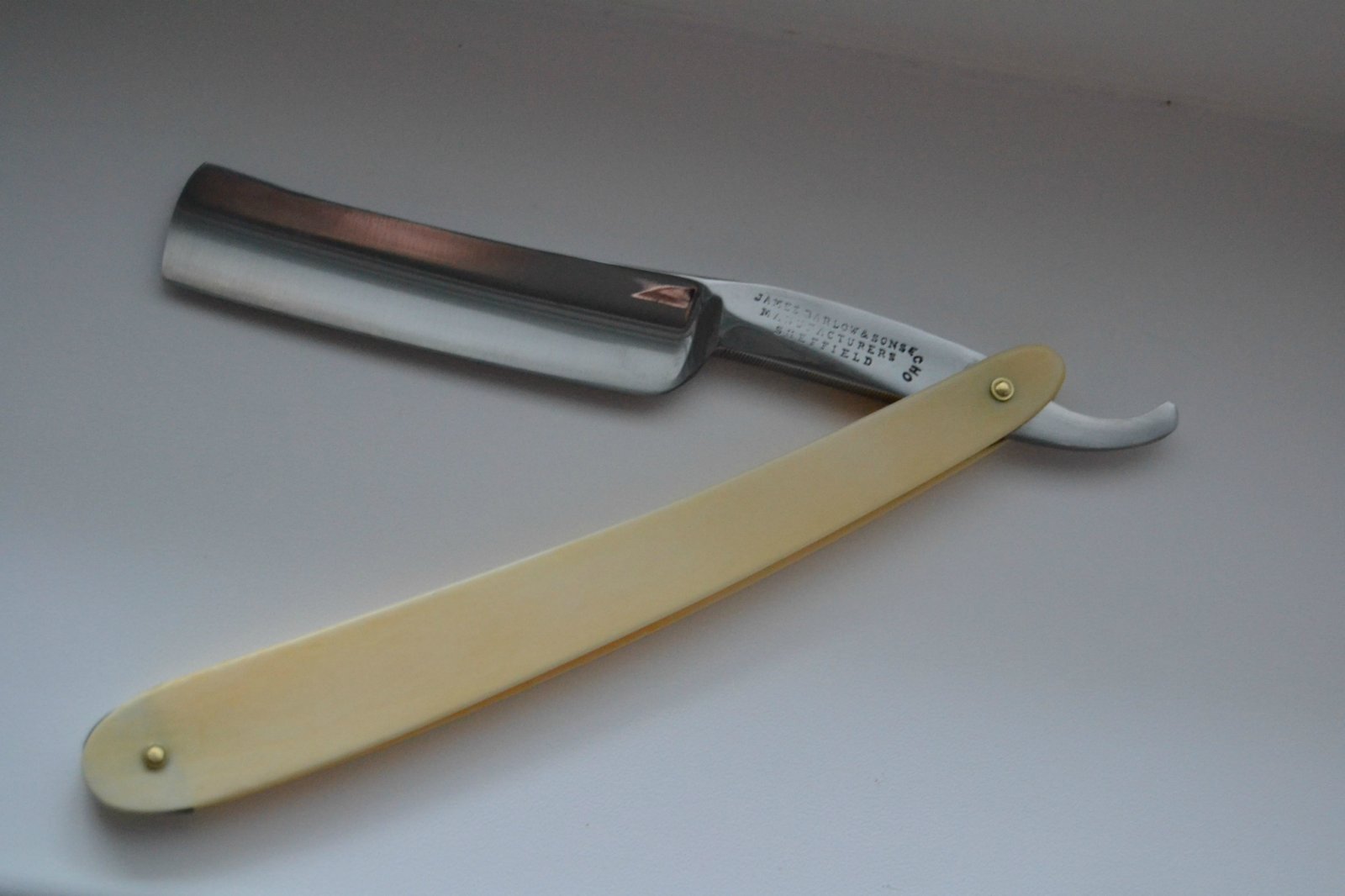 Re: Продается от Boris.Продам бритву James Barlow&Sons Echo. Ручка кость, клинышек олово, заклепки латунь. Заточена и полностью готова к бритью. Продано