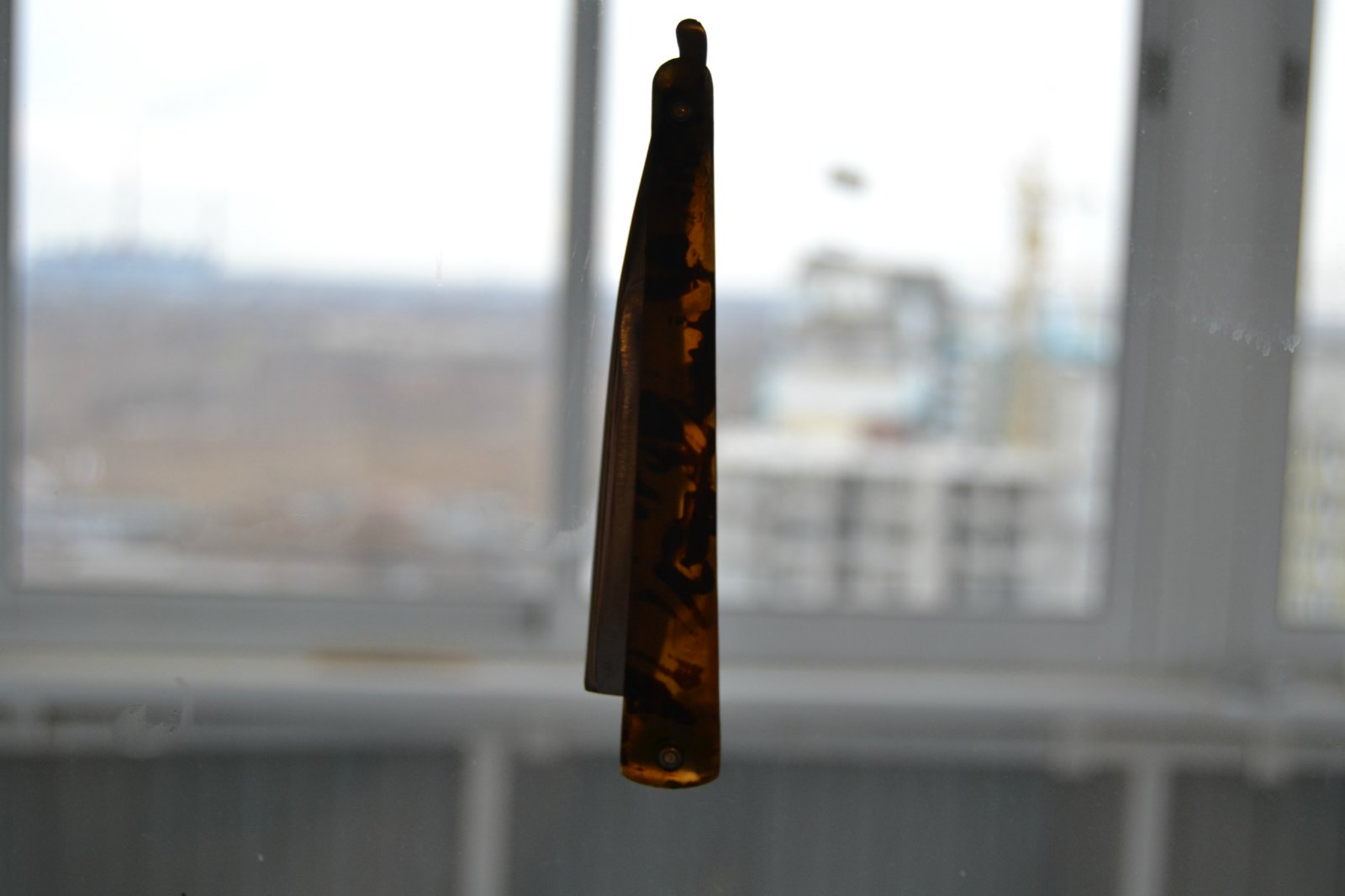 Spoiler Show К сожалению, поиски информации о производителе не дали мне никаких результатов. Разместил во французском разделе по одной единственной причине - бритва прибыла из Франции, что есть факт, сам по себе ничего не доказывающий. Если у кого то есть информация и он в состоянии ей поделиться, буду крайне признателен. Spoiler Show Фото на фоне окна сделаны не для доказательств факта левитации бритвы, а просто для того чтобы показать игру цвета черепаховой ручки