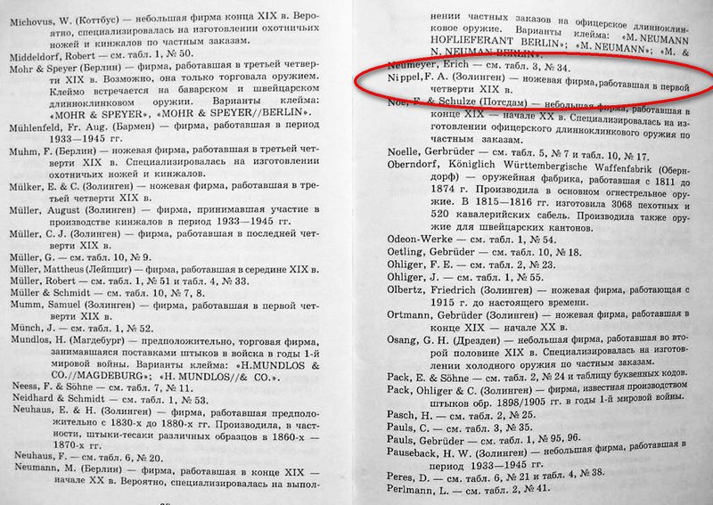 Re: F.A. Nippel Solingen-waldЧто-то нашел: у Кулинского А.Н. "Немецкое холодное оружие" есть алфавитный указатель мастеров. (см. фото). Так что древний черт этот Ниппель, возможно и бритве где-то столько же.