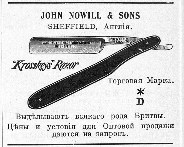 J. Nowill & Sons Sheffield est. 1700.Из Адресной книги великобританских фабрикантов и экспортеров для торговли с Россией [London, 1916].