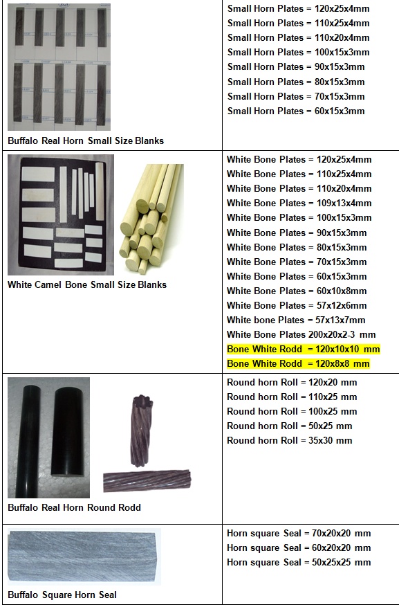 Поступило некоторое количество пластин из рога буйвола и кости верблюда.