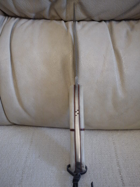 Общая длина - 22,5 см. Длина лезвия - 11,5 см. Ручка - 11 см.(Кость верблюда). Вес 260 грамм. Ножны кожаные (корова). Цена 50 евро(почта включена). Spoiler Show