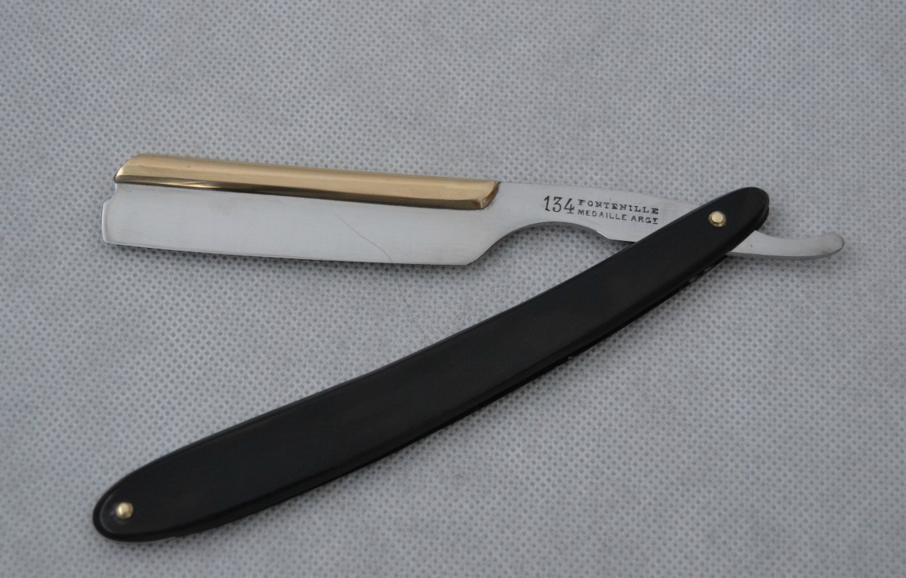 Английская бритва под торговой маркой Eclipse от Братьев Гилберт. Вогнутость 1/2, ширина 6/8. Необычная форма спинки. Новая ручка из рога буйвола насыщенной черно-белой расцветки. Рог очень высокого качества. В комплекте родной футляр гробиком в замечательном сохране. Заточена, готова к бритью. Продано Spoiler Show
