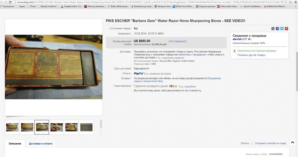 Скоро он будет продавать некоторые свои камни и решил , первым делом предложить всем, интересующимся опасным бритьём. Когда он пришлёт фотки того, что у него есть на продажу, выложу и дам контакты самого Питера .