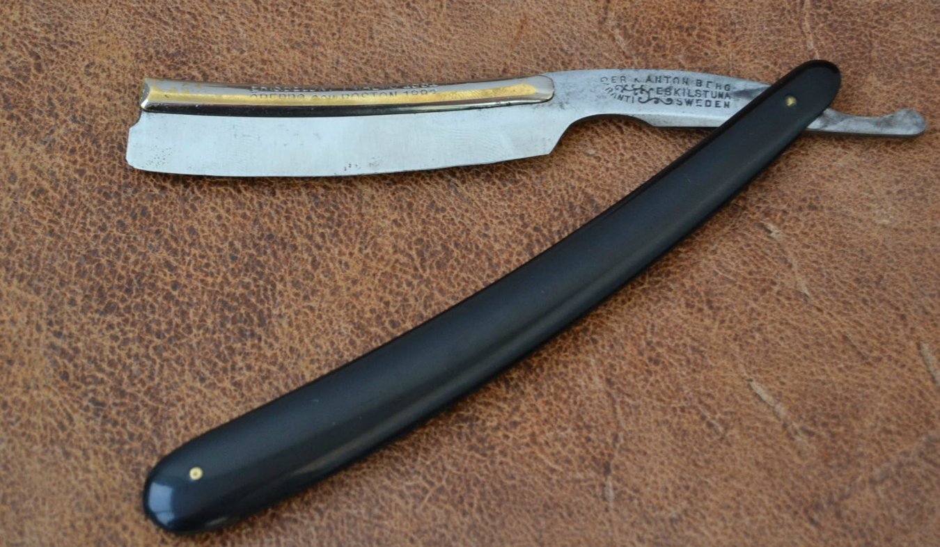 Но бреют-песня. Добавлено спустя 4 минуты 24 секунды: Один совет реставраторам. Обух в такой бритве не снимается вверх. А стягивается по направлению лезвия. От хвоста к носку. Тогда трубка останется целой. Делается так: Разводятся губки тисков на ширину эрля бритвы. Туда заводится бритва и упирается обухом(задней частью) в тиски. И дальше легкими ударами молотка через наставочку по носу бритвы у обуха. Аккуратненько. Как бы бритва выходит из обуха. Это если там почистить надо а не любопытства для типа "а что там внутри".