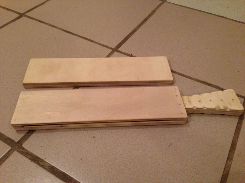Фото по порядку изготовления: тот который с ручкой и пропилом - чистая кожа, немного маслом смазал, который без ручки, цельный - под пасту, ещё не натёр. Материал - фанера берёзовая 5 мм, 10 мм, 16 мм. Покрытие дерева - пропитка "махагон" с воском ))