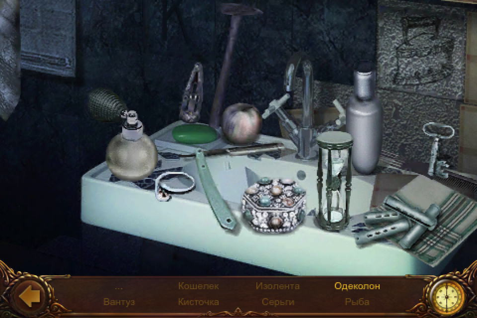 Опасная бритва в играхНесколько скринов из игры Twisted Town ("Гиблые Земли: Город Теней"). Квест с мини-играми и головоломками. В двух сценах из "поисков предметов" я обнаружил опасную бритву. Принцип головоломки: среди кучи вещей ищешь то, что написано в списке ниже картинки, тыкаешь в это пальцем, оно улетает из картинки и уходит из списка.