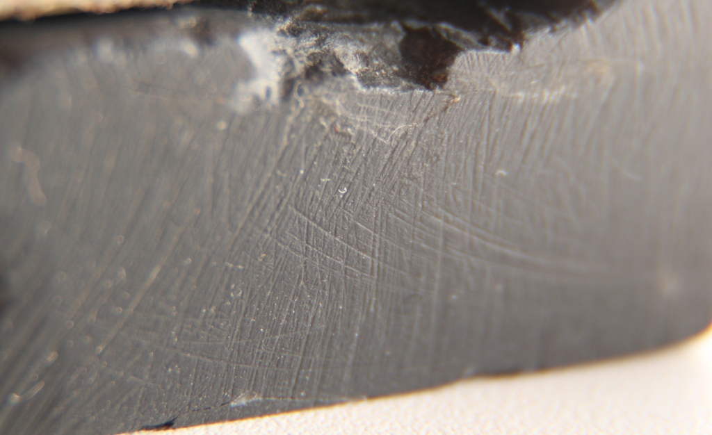 - 3.Одним из признаков тонкого камня являются мелкие царапины на поверхности камня. Если камень давно не использовался, то царапины напоминают паутину и могут быть по всей плоскости Эшера.. Белые, тонкие царапины.