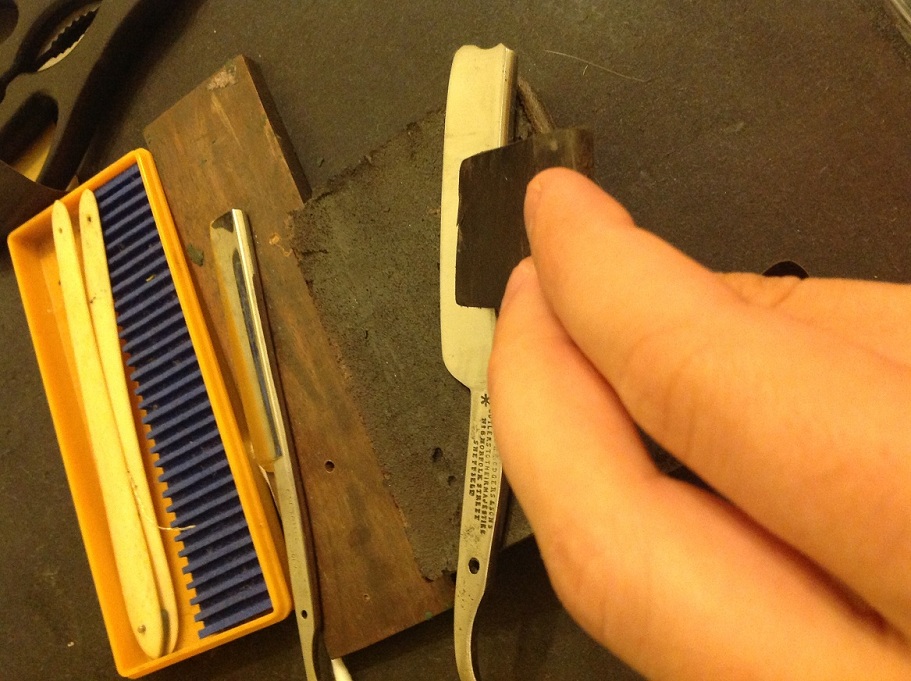 Re: Начинающие реставраторы...С этим у меня проблем нет) Я использую гранитную плиту 30х30, на ней очень удобно прижимать бритву для работы шкуркой.