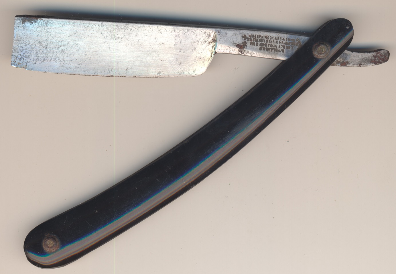 Да, хотя бы и в ручке. В том, что ее меняли. А значит употребляли. Если бы она просто лежала на буфете, кто бы стал менять? Добавлено спустя 5 минут 54 секунды: Кстати, ручка действительно не родная. На фото не видно, но возле верхнего пина ручка явно сточена. Подогнали под бритву. Да и скорее всего родная ручка была не изогнутая, а прямая. В книге *900 years of razors...* есть фото Роджерса с таким вот толстым тангом и с прямой ручкой. Назрел момент, буду делать. Рог прикупил уже, а как там выйдет - бог весть. Но буду стараться.