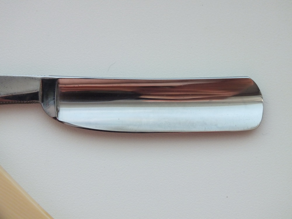 Re: Восстановление опасной бритвыЕсть Butcher 8/8 (чуть более 25мм), благодаря почте или отправителю (в посылке все перебилось слегка) у бритвы появился скол на полотне вернее их два второй не такой большой но есть.