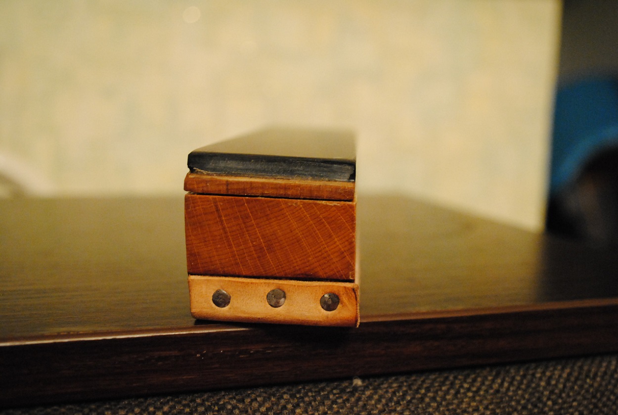 Размеры пенала: длина 200 мм. ширина 41 мм выс. 40 мм. Крышка закрывается плотно (не болтается), .. дерево не идеальный материал и поэтому появились небольшие зазоры между крышкой, но учитывая "его" возраст, думаю это простительно. ПРОДАН. Spoiler Show