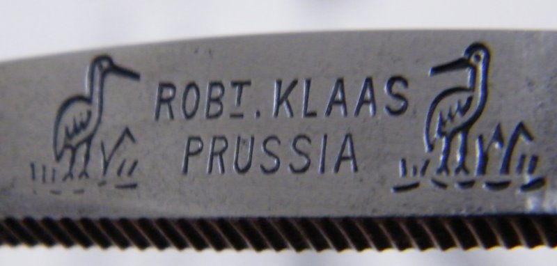 В 1834 году создано производство перочинных ножей Peter Daniel Pauls, бывшего изготовителя ножниц и отца покойного владельца Frederick Robert Klaas из сообщества Hofschaft Scharrenberg Merscheid. 1843 - покупка дома у мэрии, чтобы компания Merscheid принадлежащая Hofschaft Mankhaus переехала туда. В этом доме были расположены первый офис и отдел упаковки. Производство открылось в дополнительном здании на новом месте. Здание имеет и по сей день на фронтоне буквы «PDP» и год создания 1843. В этом месте компания Mankhausen Robert Klaas существует и по сей день. 1850 - специализация компании, особенно в производстве высококачественных карманных ножей из трех и четырех частей. Первый значительный заказ из Соединенных Штатов Америки. С 1851 года указание расположения компании "Mankhaus на Ohligs". 1857 - Frederick Robert Klaas женился на Julianna Henrietta Pauls, дочери основателя фабрики Peter Pauls. После смерти Peter Daniel Pauls фабрики и все права были переданы его дочери Julianna и ее законному сыну от Фридриха Роберта Клааса. 1869, 20 февраля - вступление компании в коммерческий реестр под названием «Robert Klaas», Solingen-Ohligs, Pfeilstrasse 37. Продажи высококачественных сумок и перочинных ножей и ножниц увеличилось как внутри страны, так и в приграничных странах и США. 1893 - появление марки в виде «целующихся аистов». 1897 - Роберт Клаас уходит из бизнеса, и передает его двум его сыновьям Вальтеру и Эрнсту. 1900 - в связи с непрерывным ростом компании за счет успешного бизнеса, особенно в США, средства для производства были значительно расширены. 1908 - строительство четырехэтажного торгового здания, в основном, для хранения, перевозки и администрации. На сегодняшний день это здание служит своему первоначальному использованию более чем сто лет. 1917 - строительство собственых литейного и кузнечного мощностей. Используя собственное кузнечное производство, компания стала независимой от поставщиков столь необходимого сырья для изготовления лезвий и ножей. В 1922 году последовало переселение в новое здании, связанное с технологией закаливания. 1934 - компания празднует свое 100-летие с сотрудниками и деловыми друзьми, путешествуя на корабле по Рейну. Город Золинген поблагодарил особым образом: улица, ведущая к коммерческому зданию была переименована в Robert Klaas-road. Создание и развитие бизнеса в Южной Америке, особенно в Бразилии и Мексике. Строительство Operations Department «Bare Arms». Вторая мировая война принесла потери. Политическая ситуация в Германии и отсутствие энергии и сырья привели к трудностям развития компании пострадавшей от войны, и новое начало было с огромным трудом. Проблема была в ограничениях военным правительством союзников в сентябре 1945 года, когда было разрешено работать на заводе с очень ограниченным числом сотрудников и ограничения энергетического перераспределения. 1948 - денежная реформа 21 июня 1948 принесла значительный экономический поворот и заложила основу для восстановления экономики в Германии. Строительство новой сети представительств в Германии и Европе, а также активизация существующих клиентов в стране и за рубежом. 1955 - расширение здания для кузницы и слесарни за счет дополнительного этажа. Во вновь созданном пространстве с новыми машинами создали современную шлифовальную. 1983 - приобретение марки «Hahn und Henne» или «Hen & Rooster» (Курица и петух) бывшей Bertram company. Все продукты бренда «Hahn und Henne» имели мировую известность, в частности, в Соединенных Штатах - лучша