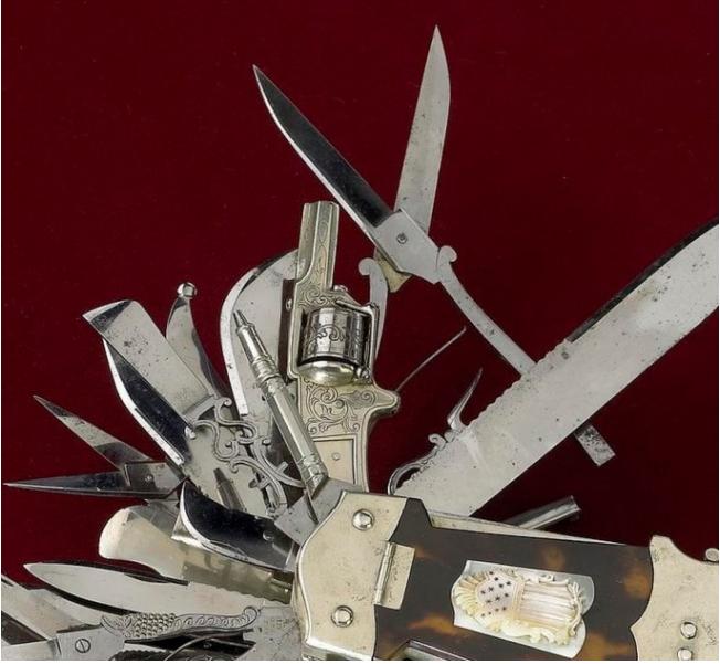 В 1880 году, за 10 лет до начала производства знаменитого швейцарского армейского ножа, Джон С. Хеллер из Германии создал этот уникальный многофункциональный нож, который включает в себя 100 разнообразных инструментов. В их числе пятизарядный револьвер, ножницы, штопор, пила, резак для сигар, ручка и карандаш, зеркало, лезвие для бритья и множество других инструментов. Рукоятка ножа также открывается, в ней встроены миниатюрные ножи и ножницы, а также нож с распятием. Spoiler Show Re: Интересные фото с бритвойТам есть вторая интерпретация. Борис *** попадешь!