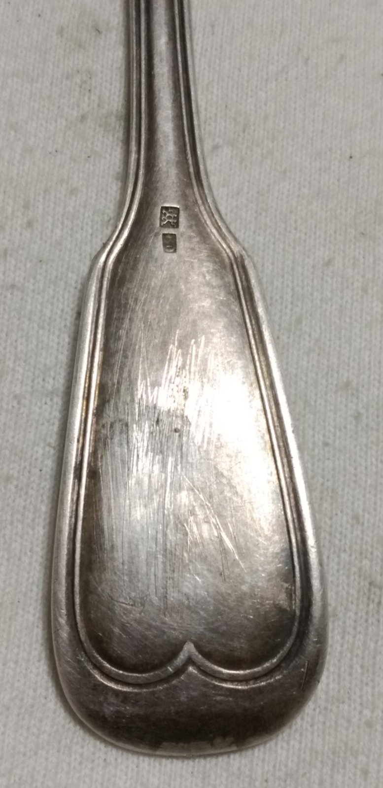 имеет поскольку предмет столовый и судя по пробе клейма посеребрен.