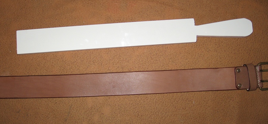 2. Кожа. Телячья толщина 5 мм, на разных ремнях некрашеная и крашенная. 2.1. Некрашеную не готовил специально – просто отрезал и наклеил. 2.2. Крашенную мочил и растягивал (сушил подвешенную с грузом в тёмном, хорошо проветриваемом помещении). 3. Клей. ПВА. Нанёс тонкий слой на дерево и на кожу, потом под пресс на 24 часа. 4. Габариты ремня. 4.1. Два широких односторонних ремня с рабочей поверхностью кожи 265х56 мм и 217х56 мм.. 4.2. Узкий двусторонний с рабочей поверхностью кожи 425х35 мм. 5. Габариты основы. 5.1. Широкие ремни: 265х56х25 мм и 235х56х25 мм. 5.2. Узкий ремень: 430х35х14 мм. 6. Наличие подложки. Принимая во внимание толщину кожи, решил обойтись без подложки. 7. См. п.6. 8. На широких ремнях полукруглой стамеской вырезал пазы, оставив под кожей 5 мм слой дерева. На узком ремне не делал пазовые амортизатор. 9. Выровнял поверхность с помощью наждачной бумаги, натянутой на ровный брусок. Начал с №100, закончил №1000. Проверил на наличие остаточного абразива на коже (провёл ремнём по пластиковой прозрачной поверхности и оценил последствия – царапин не появилось). 10. Основная особенность в том, что ремень не прогибается, как натяжной или подвесной. На мой взгляд, более чёткий контроль соприкосновения клинка бритвы с поверхностью ремня. Узкий ремень удобнее на «улыбчивых» бритвах, широкий – на прямых. Длины узкого ремня хватает для качественной проработки всей длины РК Х-образными движениями (правится и кончик и «пятка»). Глубина понимания определяется степенью заблуждения...