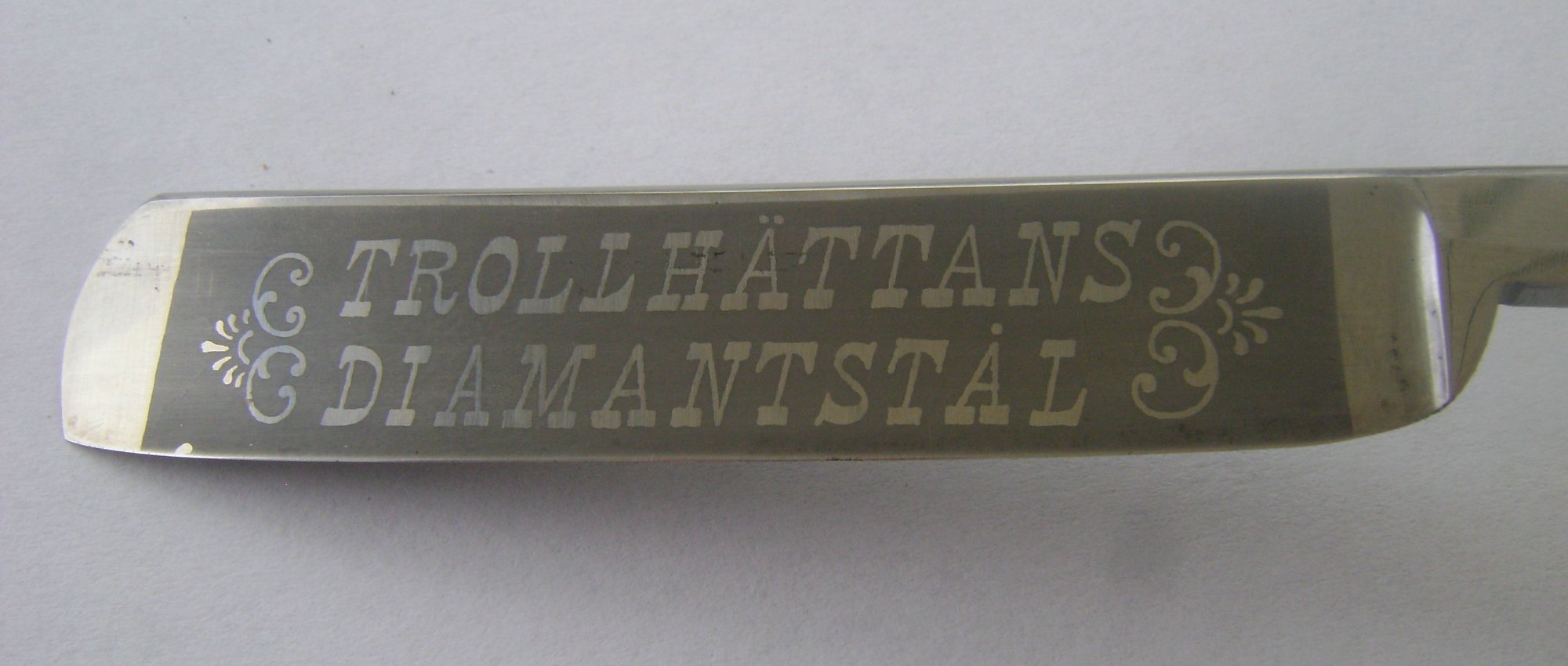 Трольхеттан, почти новый, но с ужасным заводским дефектом. Обушок кривой как коромысло. Но бритва все равно красива.