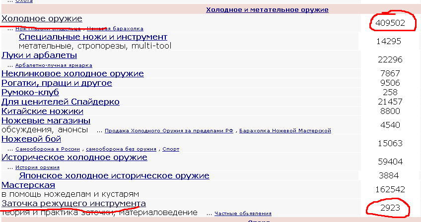 Один из сайтов это ганза - намного олее миллиона сообщений  и только о колюще режущем.