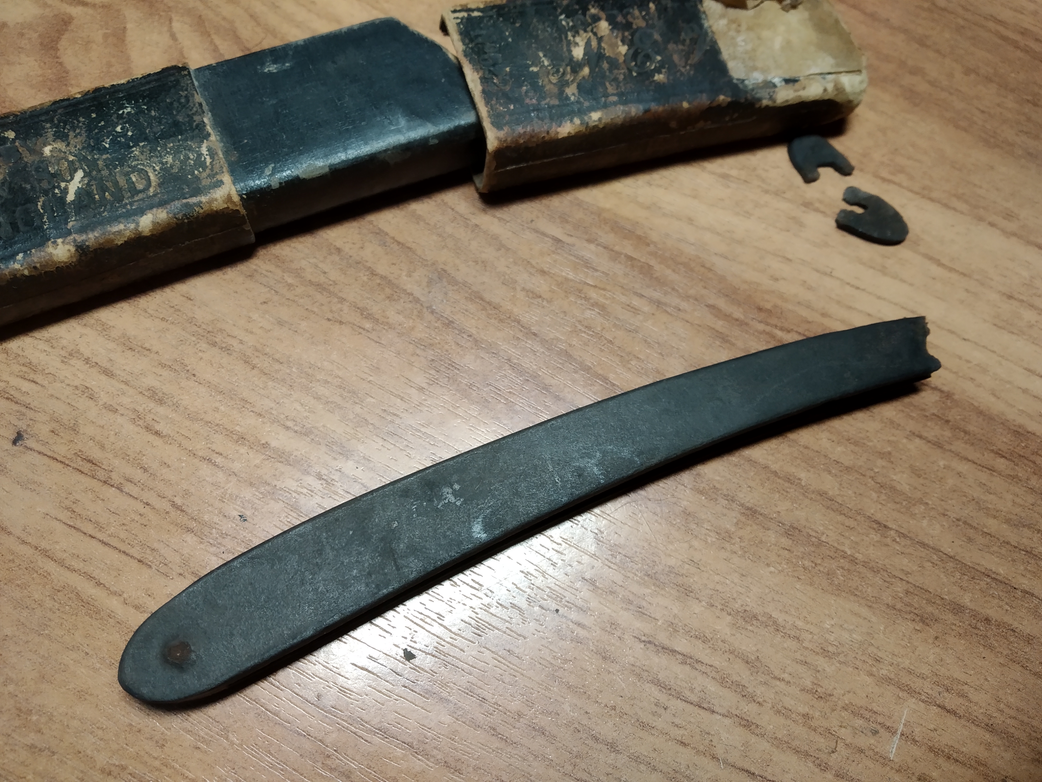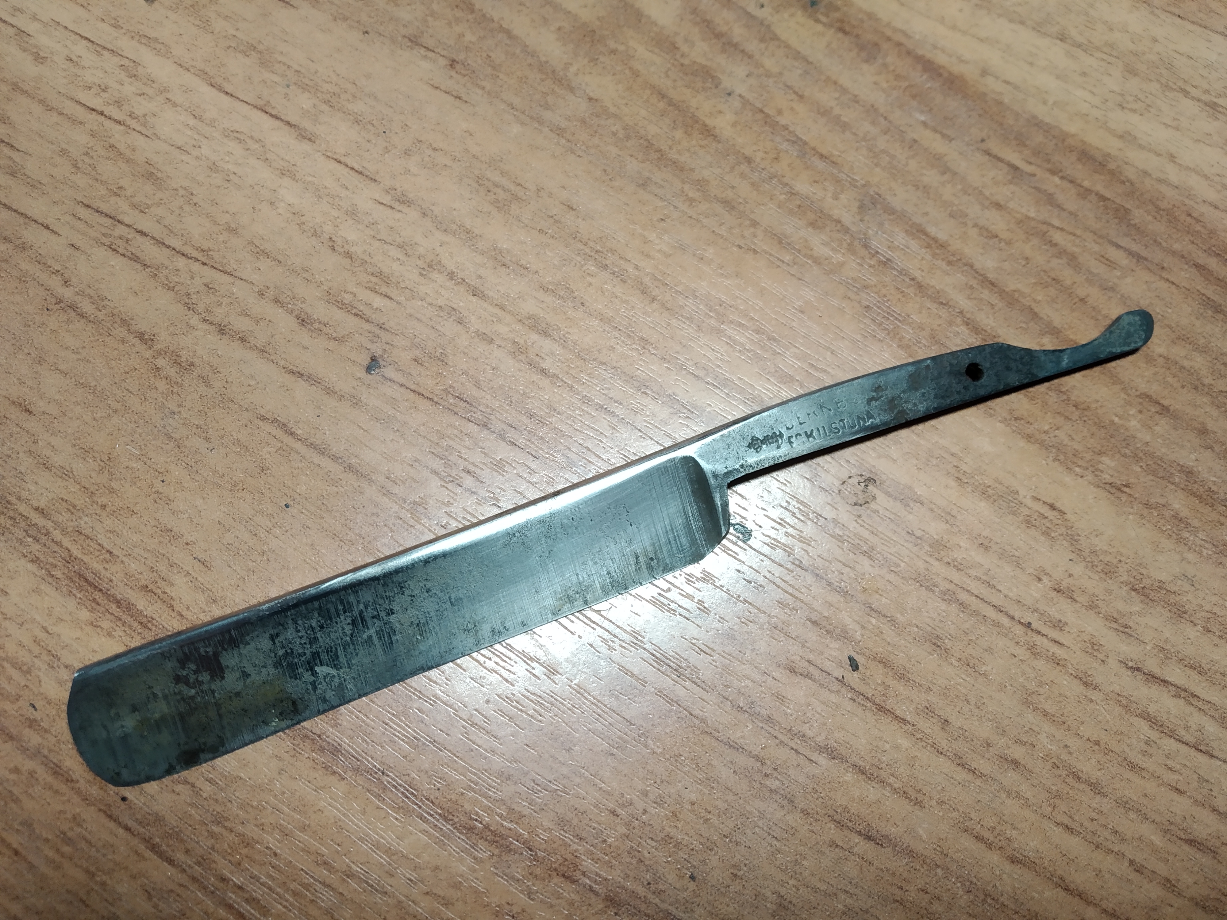 Приятно конечно держать 100 летний металл в руках, но что-то побаиваюсь портить, может быть кому-нибудь нужную вещь, если она имеет ценность. Мне нужно бритье, до коллекционирования я не дорос пока. Фото прилагаю. Оговорюсь сразу, я "ох" в этом деле. Пока. У бритвы ручка есть, но она старая настолько, что в месте соединения с клинком просто рассыпалась. Я её сохранил для шаблона, мне не трудно сделать рукоять из дерева по размерам.. Вот. Коробочка к бритве была, но и та труха почти, в добавок не родная. Итак, уверен, есть знатоки. Скажите пожалуйста, бояться или не бояться мне эту бритву "курочить"? Полистал так немного форум, посмотрел всяких видео. Все как один говорят, что каждый, скорее всего со своей первой бритвой не подружится, и хорошо, если не угробит её.