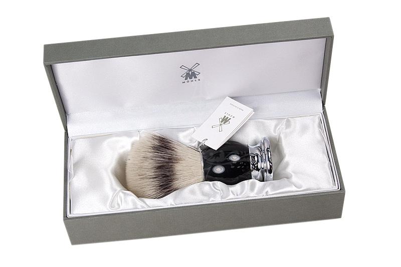 Ручка из высококачественной синтетической смолы со стальными вставками. Помазок выполнен из высококачественной искусственной щетины "Silvertip Fibre". Диаметр пучка 23 мм.
