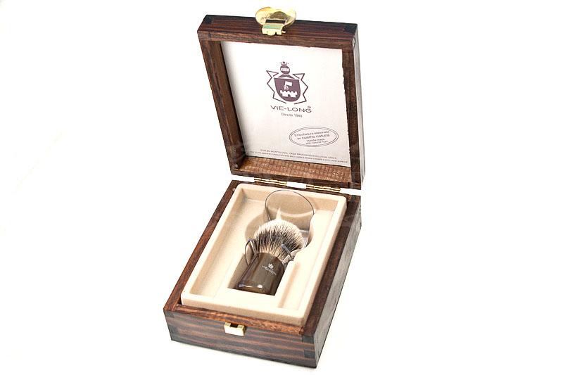 Кисточка-помазок для бритья, "серебряный барсук", натур. рог