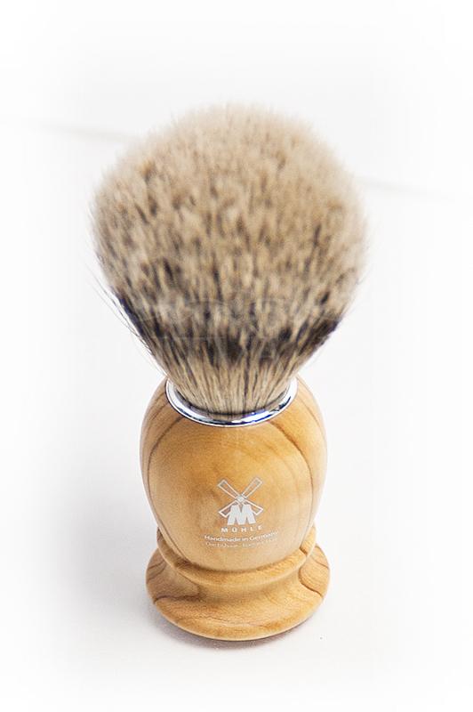 С ручкой из оливы, кисточка - "серебряный барсук", наивысшего качества (необрезная - ручная набивка)