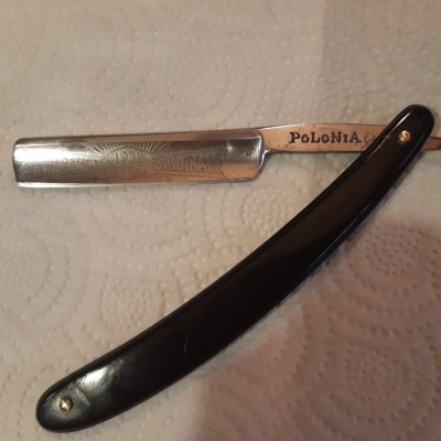 Артель "Бритва" Москва (*)Получил вчера бритвочку *Арт.Бритва*.Убитая немного,но интересная.Клеймо такое еще не встречалось-модель 75.Год выпуска не указан,пластик на рукоятке светлый очень,даже какой-то розоватый.Стоит клеймо 2с.Предполагаю,второй сорт из-за замина на обушке сверху(как бы приплюснут)и эрль немного отклонен ...