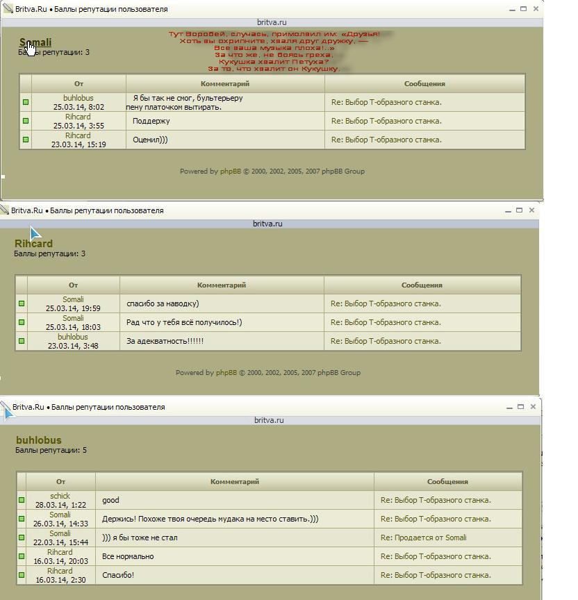 п.с. Правда можно и плюсов раздачу устроить http://britva.ru/forum/viewtopic.php?f=1&t=1836" onclick="window.open(this.href);return false; Re: Минусы в репутации и наше к ним неадекватное отношениеВот и отрыв пошел.