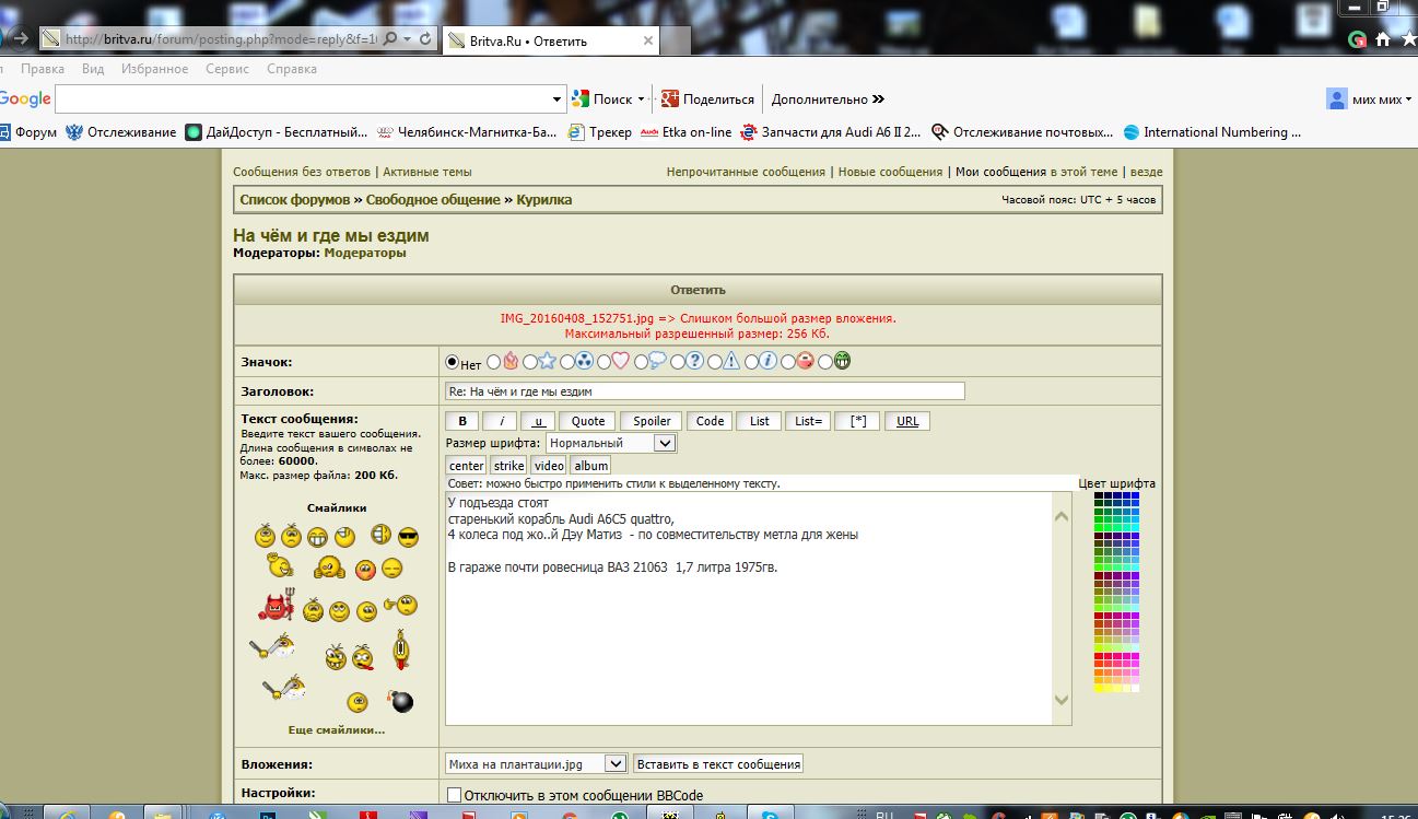 Re: Отзывы о работе сайтаВ компе даже 264кБ не грузит, не говоря уже об 5метрах. Браузер IE Боюсь показаться навязчивым, но тратить час времени, что бы написать одно сообщение, перезалить фотки из телефона в комп, ужать, подгрузить... ну нах. Молчать буду