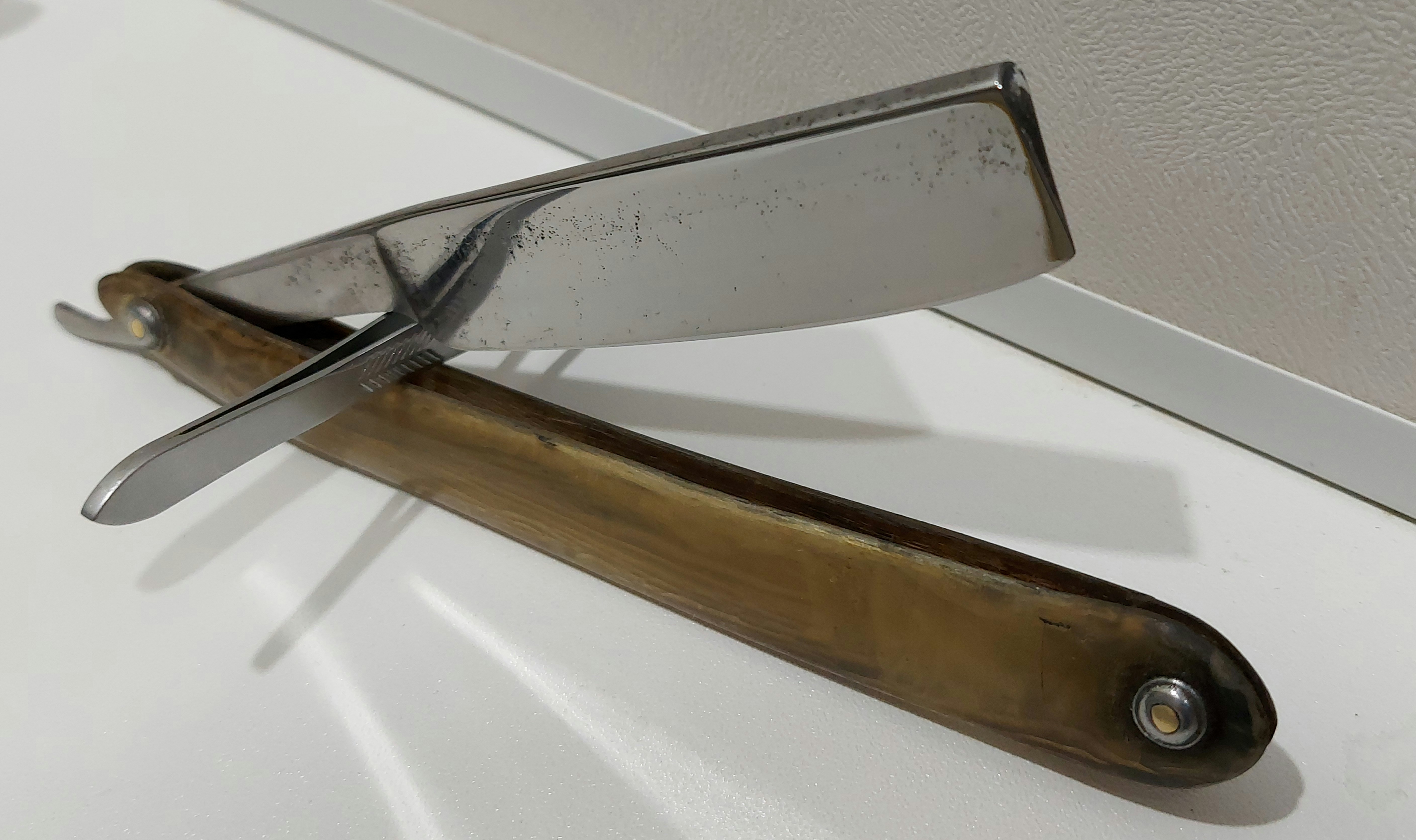 Бритва до... и после...Volgar, хорошая работа. Следы времени не критичны, поэтому подойдёт не только для себя, но и для кого то. Тем более учитывая столь почтенный возраст бритвы.