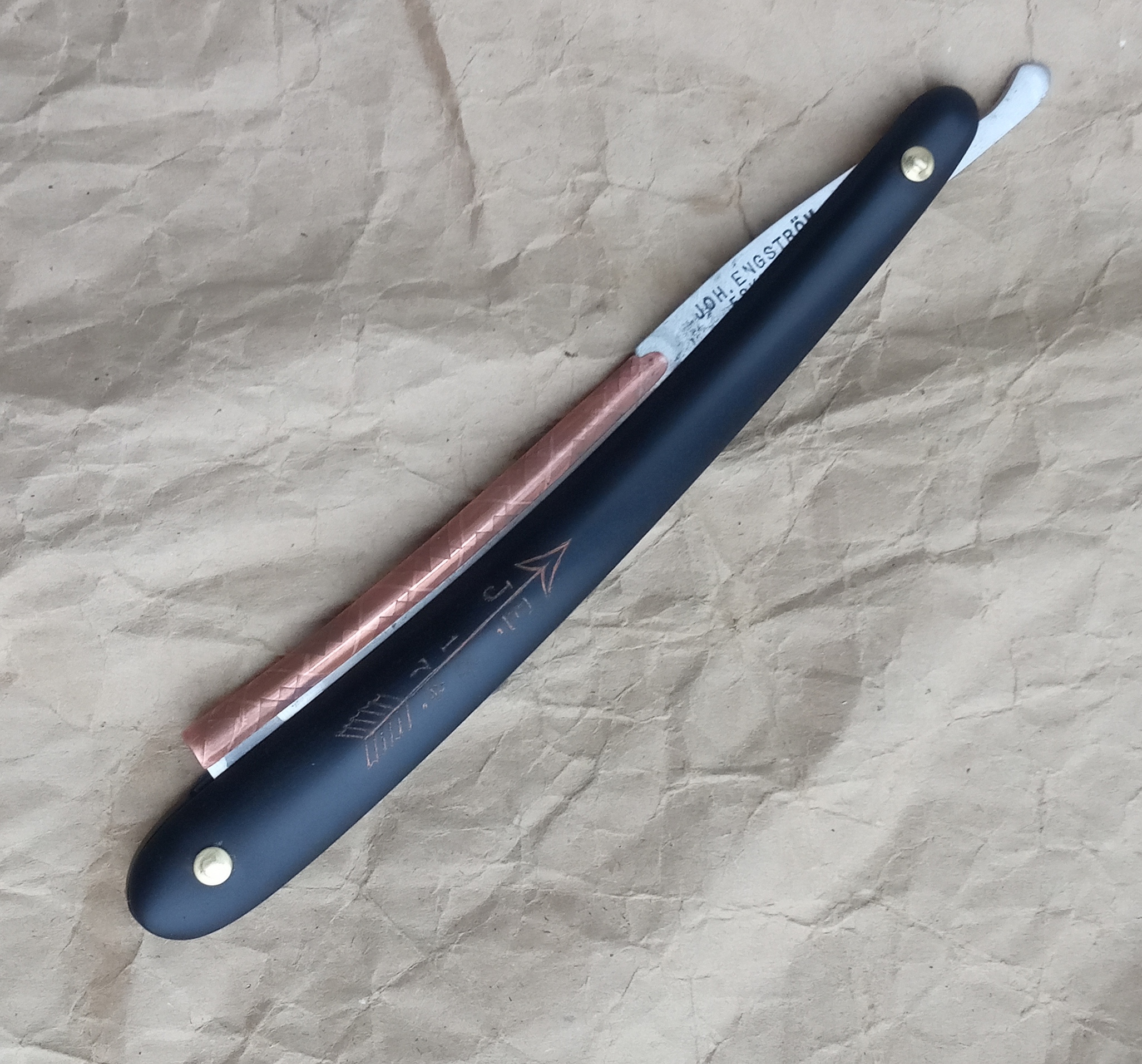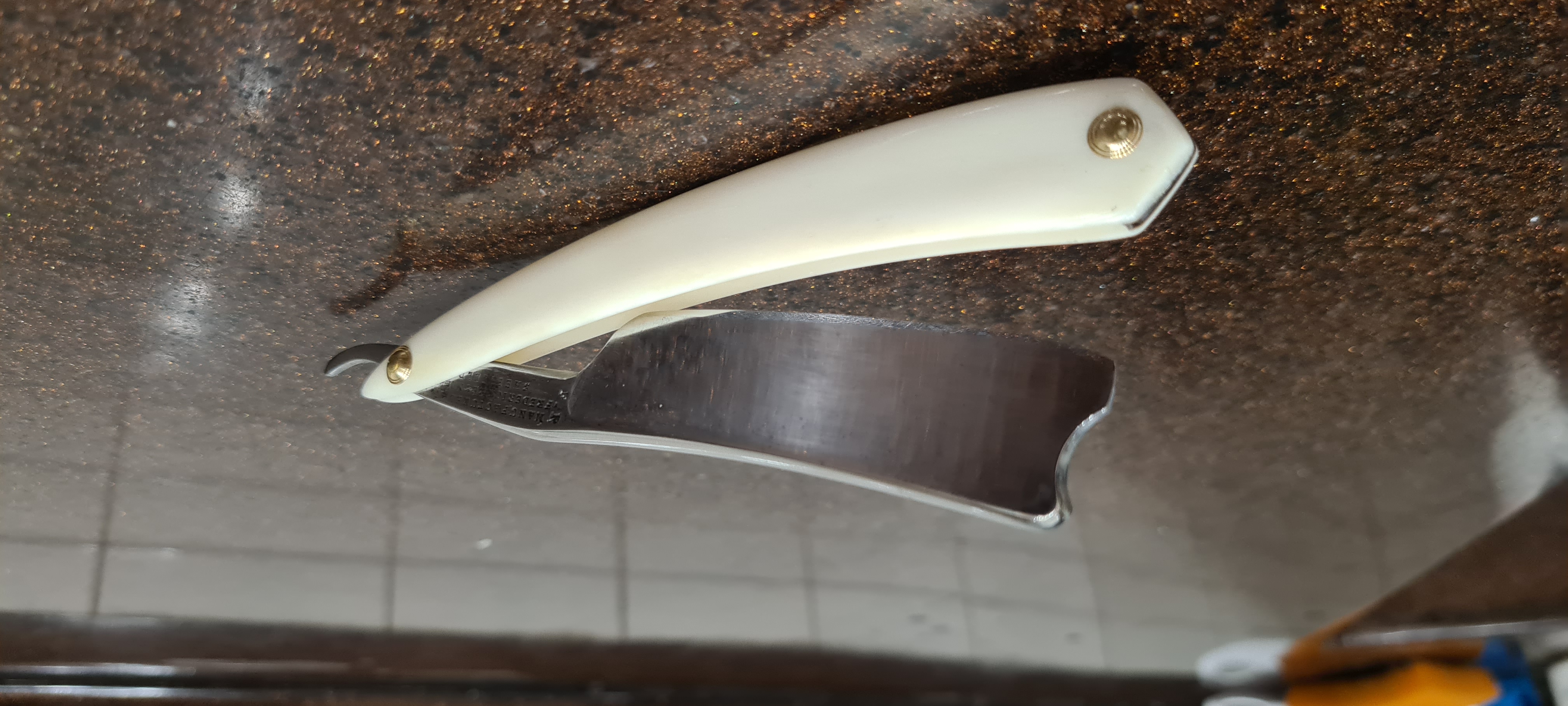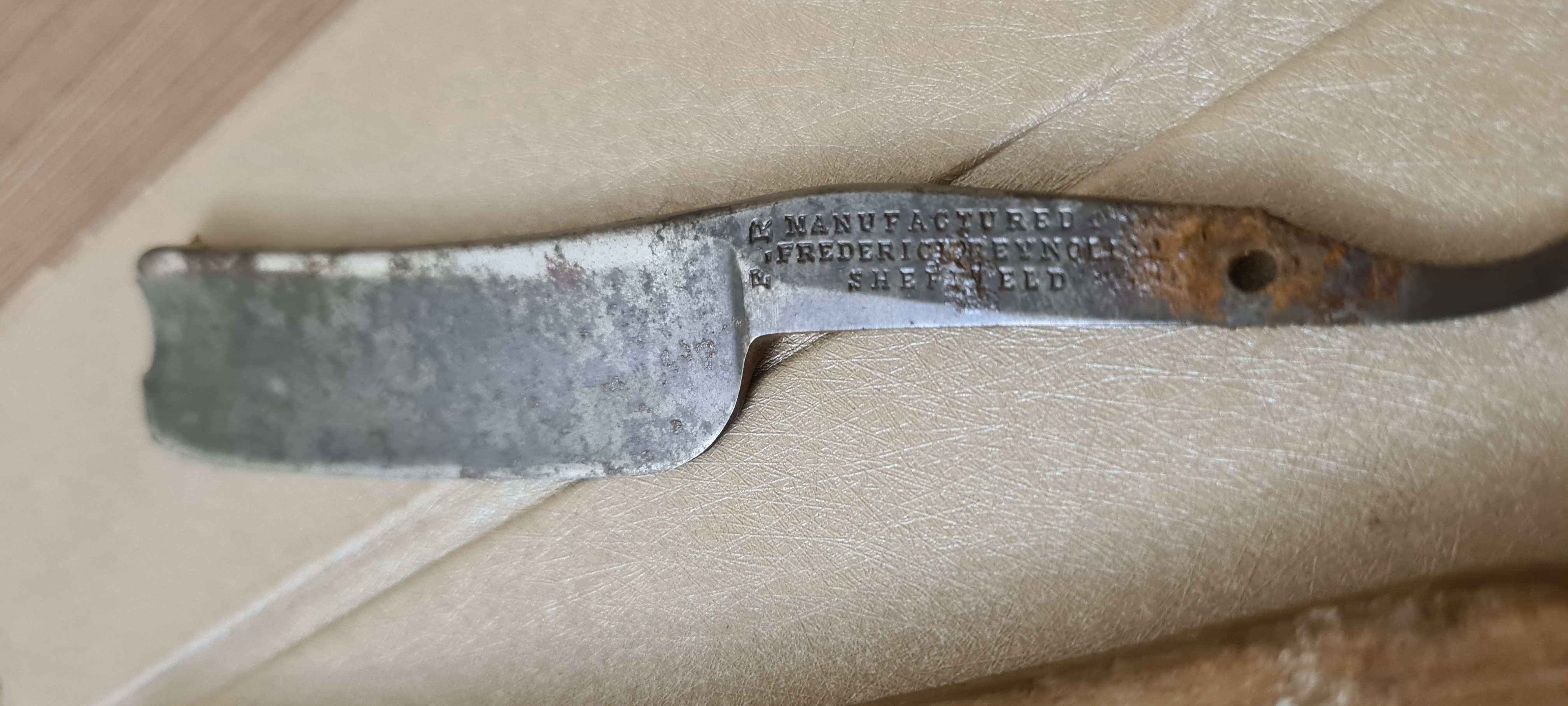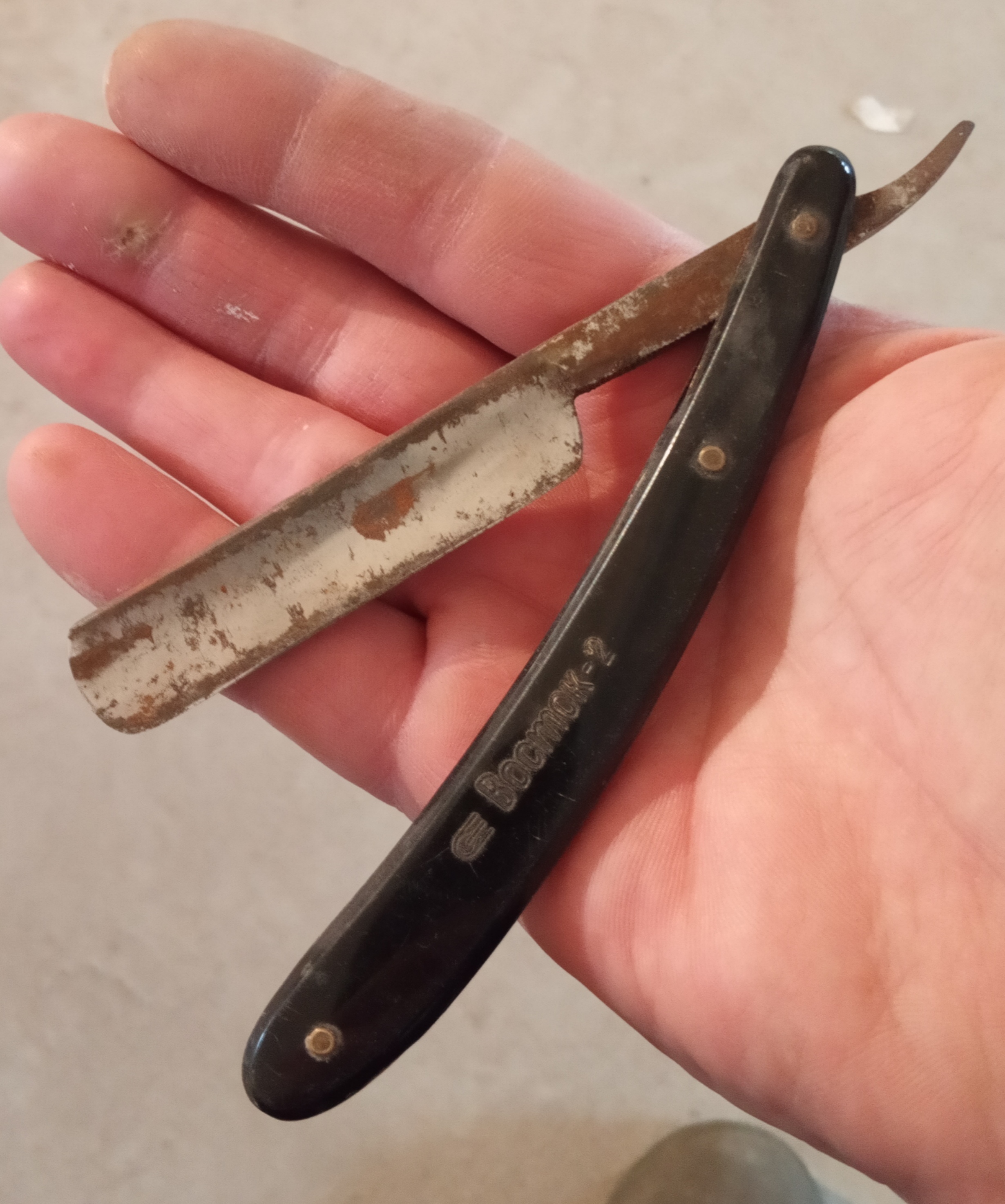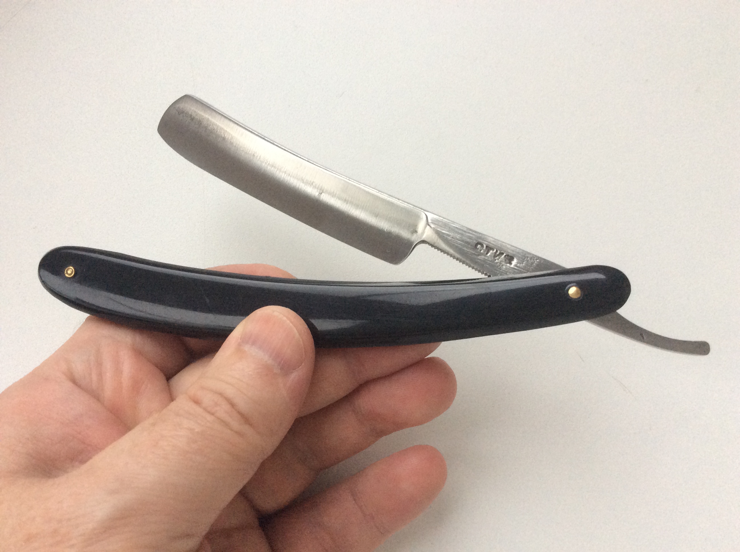 Протер тряпочкой. Оправу выпрямил, пины заменил. У бритвы редчайший дефект клейма. 32 года активно мусолю харю клинковой бритвой