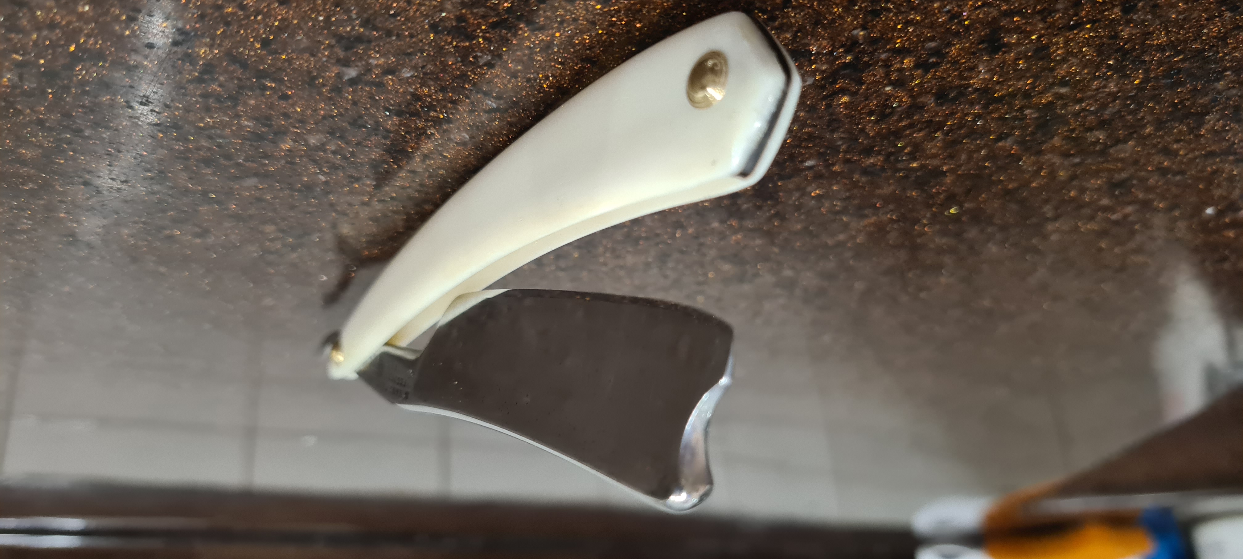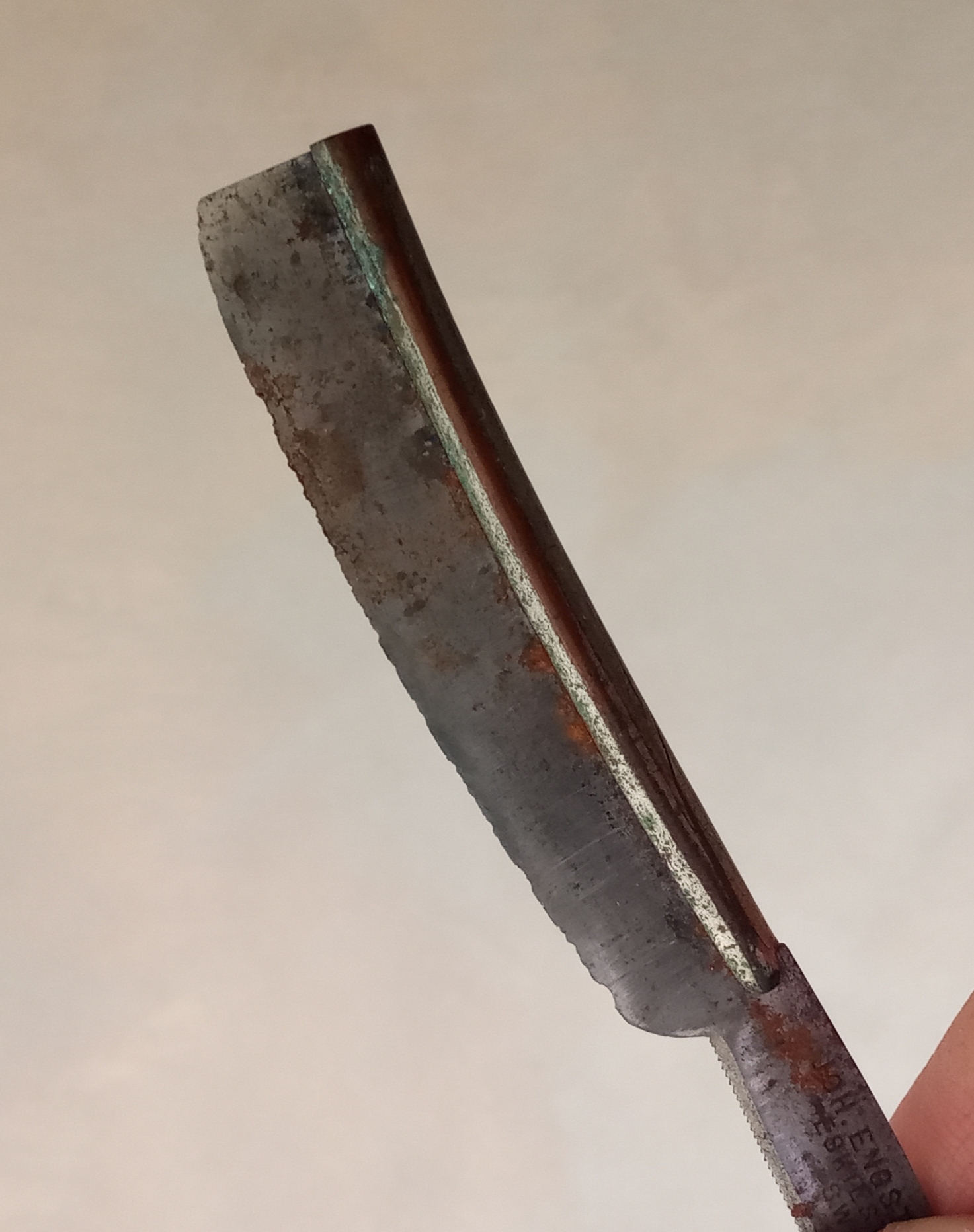 Бритва до... и после...Попал ко мне Стиз в плачевном состоянии. Решил им позаниматься. Фото До и После. Кстати, сталь отличного качества. В заточке очень хороша, твёрдая, но не крошится.